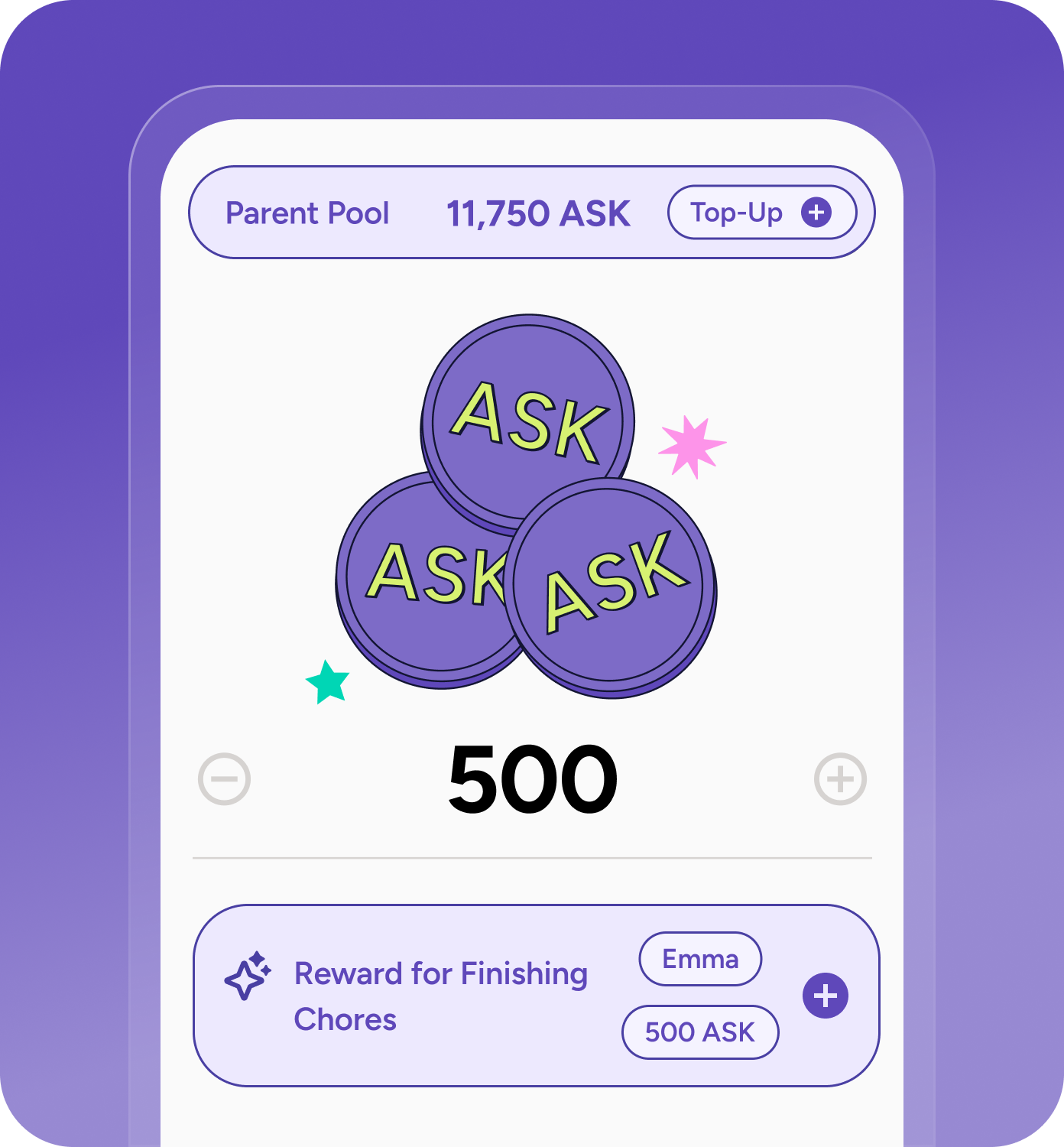 ASK is Permission’s family-friendly digital reward — designed to help parents motivate positive habits, teach responsibility, and introduce kids to the future of money in a safe, age-appropriate way.